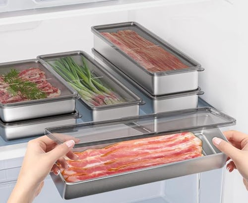 This may come as a surprise but there’s a right way to store meat in the fridge, and this stainless steel food storage container is it. The stainless steel helps keep meats chilled and prevents germs and odors from penetrating the surface. It also features ridges along the inner surface for maximum air flow, and air-tight lids for extended freshness. And you’ll appreciate that it’s dishwasher safe, making clean up easy.