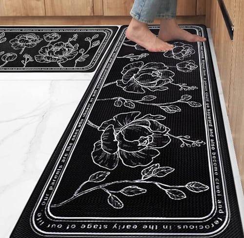Add comfort and style to your kitchen with these anti-fatigue kitchen mats. The set includes two sizes — medium and runner — and features a chic black-and-white floral design. They’re nonslip, waterproof, and so thick that you’ll feel like you’re walking on clouds. Wipe clean when dirty for easy maintenance.