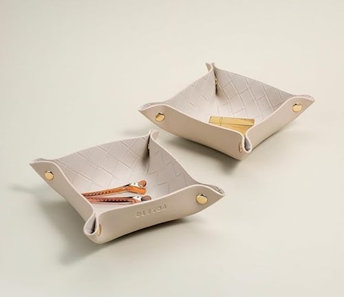 These valet trays are a chic catchall to keep by your home’s entrance, on your nightstand, and beyond. They’re crafted from faux leather and feature a woven design and gold-tone hardware. Use them to store keys, jewelry, hair accessories, and other small items. And since they’re so affordable, you can pick up an extra set to keep on hand for last-minute gift-giving.