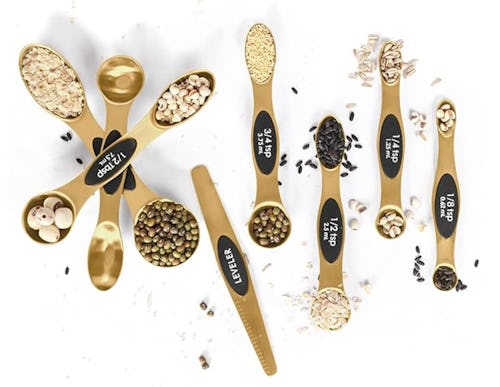 This measuring spoon doesn’t just look upscale, with its polished gold-tone finish, it’s also super convenient and versatile — just scope that 4.8-star rating after 8,000 reviews. Each spoon is clearly labeled and features dual ends for measuring both wet and dry ingredients. And the magnetic design helps keep them neatly organized when not in use. The set includes a bonus leveler complete with ruled markings.