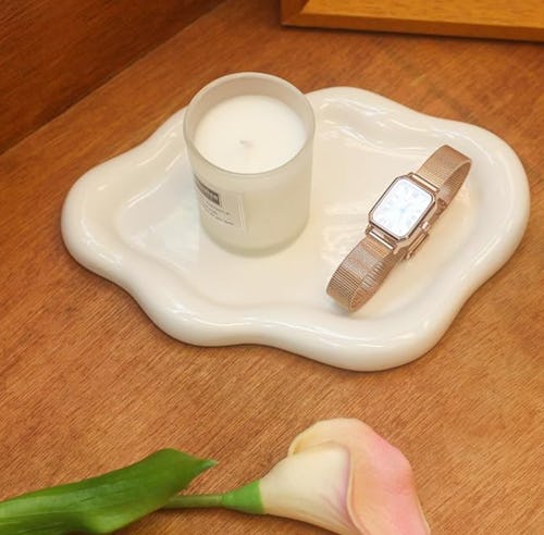 This avant-garde style jewelry tray features a fluid design that looks so upscale. It’s made from high-quality glazed ceramic that gives it a weighted feel, and the scratch-resistant surface can handle items getting tossed on it daily. Use it to store accessories or keys, to display home decor, or as a tray for resting candles, toiletries, and more.