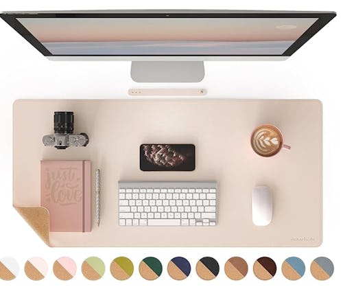 Protect your desktop surface while adding a chic touch with this roll-up desk pad. It’s made from waterproof faux leather that feels like the real thing and features a natural cork base for added comfort and non-slip convenience. It’s available in a variety of colors and sizes, so you’re sure to find one that suits your space.