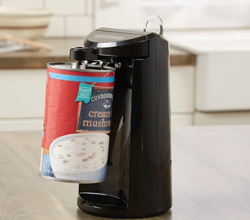 This electric can opener can pop open any beans, sauce, or vegetables in a jiffy so you can get to cooking. It also comes with a built-in knife sharpener and a removable multi-tool that removes bottle caps and pop-tops.