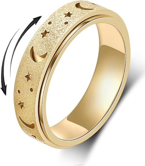 No one will ever guess that this sparkly piece is actually meant to be used as a fidget ring. It’s cute enough to wear with every outfit so that you can always have your own personal escape when you find yourself needing to refocus. It comes in tons of sizes and finishes in the listing.