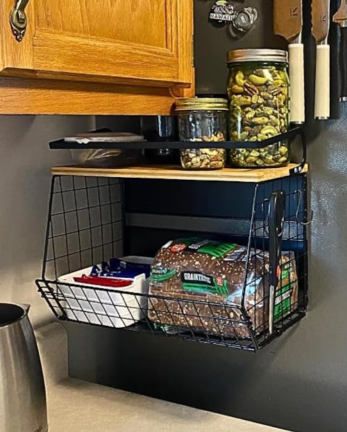 This magnetic shelf adds to your kitchen storage without taking up a ton of space. The sleek bamboo lid doubles as a spice shelf, and the strong wire basket can store produce, bread, and more. The whole thing can hold up to 33 pounds and sticks easily to magnetized surfaces. Whether you’re short on counter space or just love tidy, minimalist vibes, this storage bin turns your kitchen into a Pinterest-worthy haven with zero tools required.