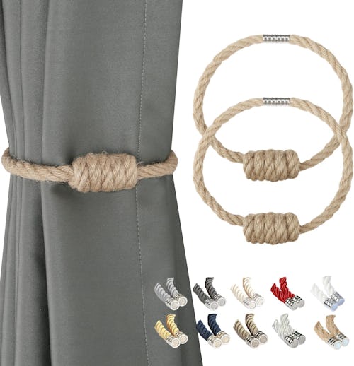 These magnetic curtain tiebacks add charm without requiring any tools for installation. Hand-woven from jute and equipped with hidden magnets, they wrap around your curtains in seconds — no hooks, no drilling, no damage to your walls. The tiebacks are adjustable, easy to reposition, and add a chic touch to any window. They’re available in 12 colors.