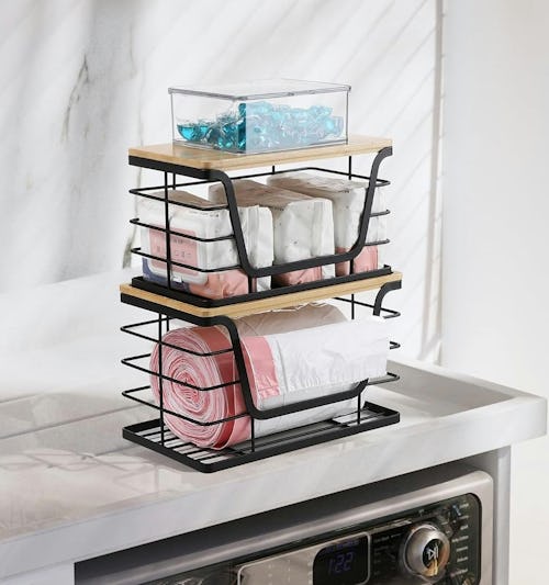 This vanity organizer is stunningly stylish and gives you five levels of storage — including three slide-out drawers and two open shelves for your taller bottles. You can remove the drawers to use them separately as trays, as well. Put the organizer in the bathroom for makeup and toiletries, in the kitchen for coffee supplies, and more. You can get it in five chic colors.