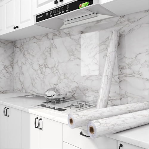 Want marble counters without the price tag (or the commitment)? This peel-and-stick contact paper gives your kitchen or bathroom a luxe refresh in no time. It’s designed to be waterproof and simple to apply (as well as easy to remove for renters). Whether you’re covering a counter, cabinet, or backsplash, the glossy finish gives everything an elevated vibe.