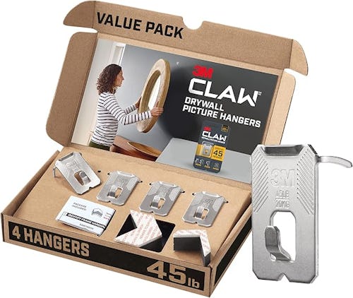 These drywall picture hangers are a durable and effortless way to hang heavy artwork and decor. They’re constructed from strong alloy steel, and each has a 45-pound weight limit. And the best part is that installation is tool-free — you don’t even need to locate studs. Simply push the prongs into the drywall, then use the hooks to attach mirrors and more.
