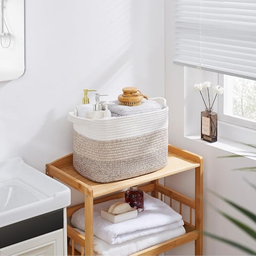 These storage baskets look so upscale that you won’t mind keeping them on display in any room of your home. They’re handmade from cotton rope for soft and durable results and feature convenient handles and a beautiful ombre pattern in natural hues. Use them to store toys, linens, or just as a catch-all for quick tidying jobs. The pack of three comes backed by a 4.7-star rating after nearly 2,000 reviews.