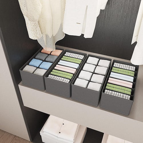 Organize your wardrobe like the pros with these fabric-lined drawer dividers. The affordable set includes four collapsible organizers with square and rectangular compartments perfect for storing everything from socks and belts to scarves and undies. Plus, the thoughtful 6-inch height maximizes storage room but won’t get stuck on drawers.