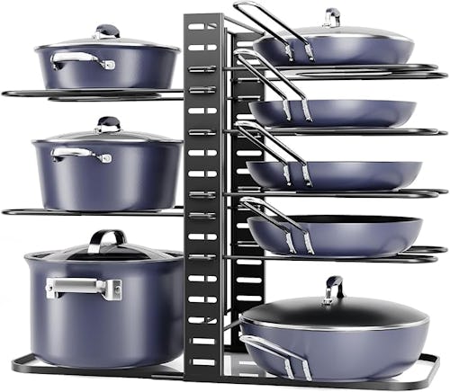A Cookware Organizer With Non-Scratch Tiers