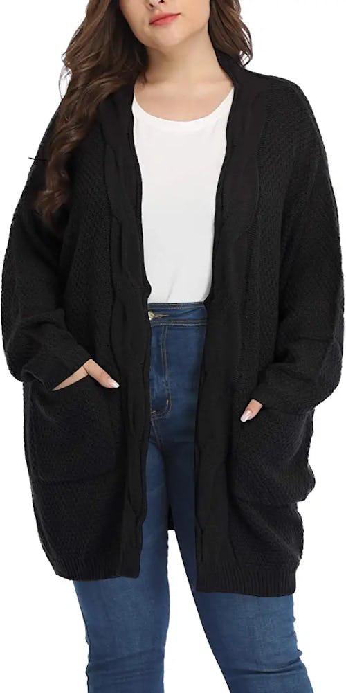 Reviewers are obsessed with this oversize cardigan. This cable-knit option has two front patch pockets and comes in seven colors that’ll go with any outfit.
