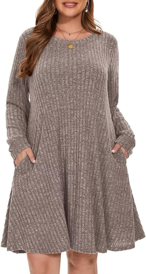 This sweater dress has style to spare and even better: It has pockets. The A-line piece is stretchy and has a beautiful flow that ends just above the knee.
