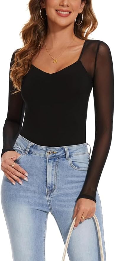 This mesh bodysuit comes in both a long- and short-sleeve option so that you have a stylish top for any month of the year. While the sleeves are see-through, the torso is completely opaque.