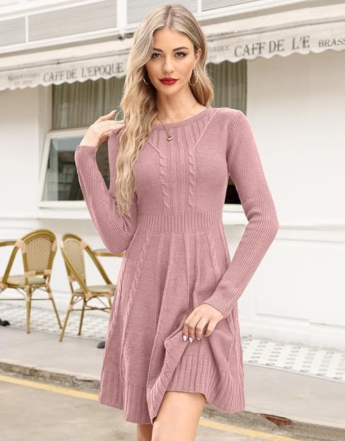 The details that make up this sweater dress (like the ribbed sleeves, cable-knit pleats, and cinched waist) are what make it look expensive. Put it all together and you have an adorable piece that makes a great option for your next party or dinner out.