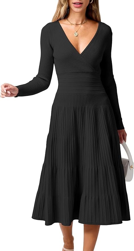 The fit-and-flare shape of this ribbed knit midi sweater dress will hug you in the best way possible. Pair it with knee-high boots or heels.