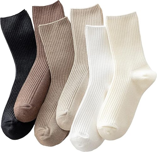 These neutral crew socks have just the right thickness to be comfortable enough to wear year-round. They’re made with a blend of fabrics (mostly cotton) for breathable, stretchy, and sweat-wicking wear. Your order comes with six pairs.