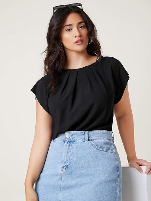 You won’t have to skip a beat between the office and dinner after when wearing this pleated blouse. It has a polished look that can be dressed up or down. And since it has cap sleeve, you’ll stay cool and comfortable.