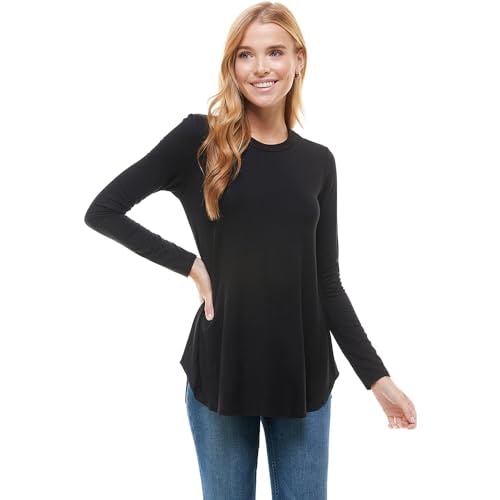 Azules Women’s Long Sleeve Tunic Tops – Flowy Casual Tunic Top with Round Scoop Neck – Lightweight Rayon Spandex Fabric, Stylish Tunics for All Seasons – Regular to Plus Size Black