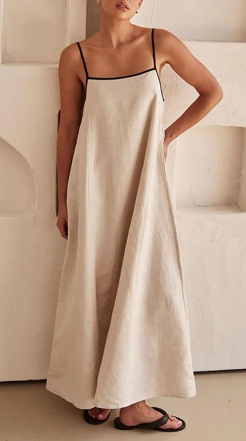 A Linen-Cotton Maxi Dress With Contrast Trim