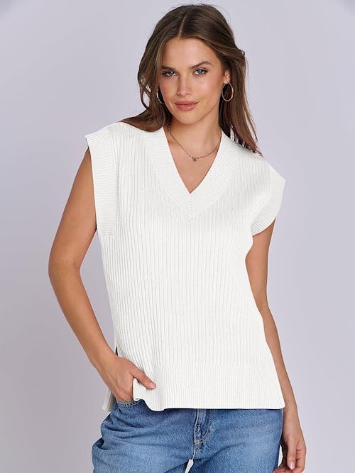 One reviewer called this V-neck sweater vest a “hidden gem” because “the quality was so unexpected for the price.” Another raved, “I did not expect this vest to be as cute as it is!” The ribbed-knit finish is thick but breathable with loose capped sleeves, so you can layer it over a long-sleeve shirt when it’s cold and wear it on its own when it’s warm.