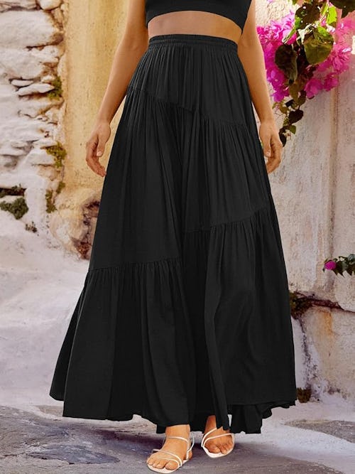 Some reviewers have this flowy maxi skirt in multiple colors and still plan on buying more — especially since the tiered, floor-length silhouette pairs well with everything from tank tops to blouses. According to reviewers, the rayon material is “breathable,” the elastic waistband is “comfortable,” and the hidden pockets are “definitely a bonus.”