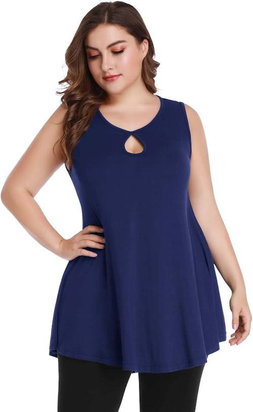 With various details to love, this keyhole top will be a go-to addition for any casual occasion. A rounded neckline precedes a cute keyhole cutout just above the chest, while the flowy swing hem gathers gently past your hips. Many reviewers rave about its draping.