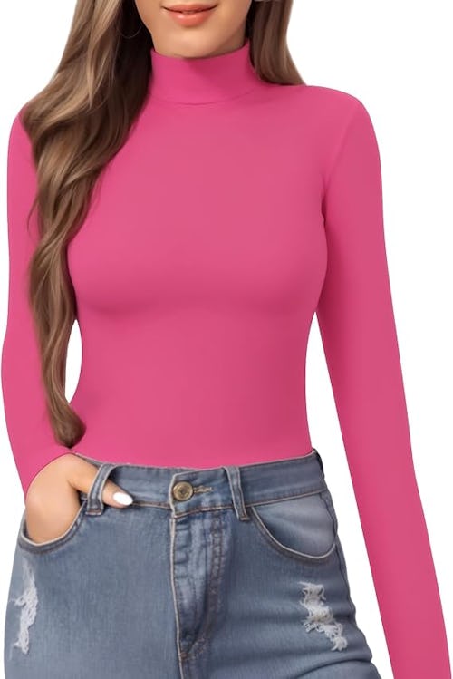 Rock this mock turtleneck has a sleek silhouette, looks chic yet casual, and gives the illusion of a full turtleneck — without discomfort. Its stretchy rayon provides a slim turtleneck fit without constricting you. Reviewers call it a great basic to have in your closet since it’ll go with anything.