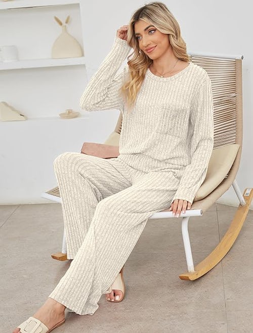 Whether lounging around the house or heading to a lazy Sunday brunch, this lounge set will make you feel super cozy and put together. The set features a relaxed cut and a sweater knit with two-toned fabric. Other details, like a breast pocket and a drawstring waist, give it a polished look.