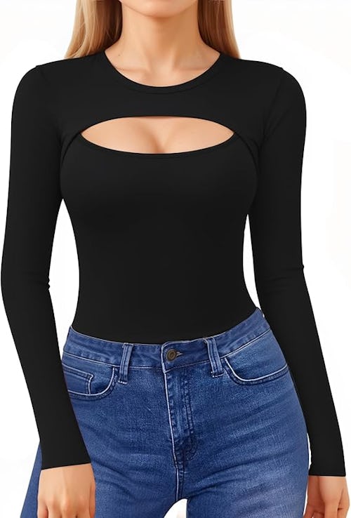 Not just your regular long-sleeve — this under $35 top features a large cutout on the chest that looks so trendy. A crew neck just grazes your collarbone, while the rest of the shirt’s smooth material makes layering a breeze. And its soft, stretchy fabric will feel great against your skin. “Bought this top for a day date, and it was perfect,” one reviewer raved. “Just the right amount of sexy […] The right amount of snug. Highly recommend this top as the material is buttery soft with just the right amount of stretch.”