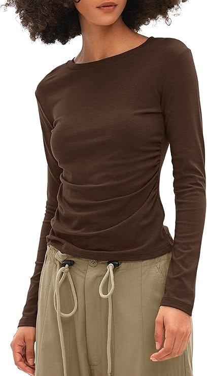 This long-sleeve shirt is crafted from breathable, soft rayon and stretchy spandex to not only look great but feel great. It upgrades a classic crew-neck cut with ruching on the sides for a sleek fit that’s endlessly wearable. Wear it solo or layer it — some reviewers remark on how easy it is to style with jackets and accessories.