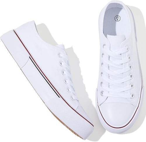 Casual, practical, and endlessly versatile, these tennis shoes will be a staple — matching everything. Lightweight, breathable canvas will keep your feet cool, while details like striping on the sole and a stylish low-top cut add extra flair. Choose from timeless neutrals or colors like red and pink.
