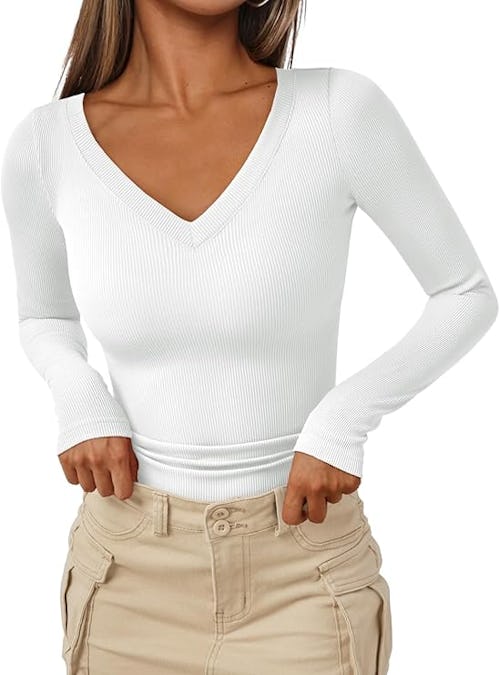 Not just your regular long-sleeve — this under $35 top features a large cutout on the chest that looks so trendy. A crew neck just grazes your collarbone, while the rest of the shirt’s smooth material makes layering a breeze. And its soft, stretchy fabric will feel great against your skin. “Bought this top for a day date, and it was perfect,” one reviewer raved. “Just the right amount of sexy […] The right amount of snug. Highly recommend this top as the material is buttery soft with just the right amount of stretch.”
