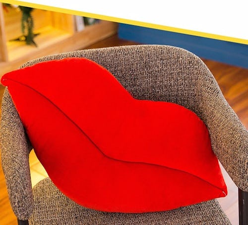 A Soft Velvet Pillow That Looks Like A Pair Of Sexy Red Lips
