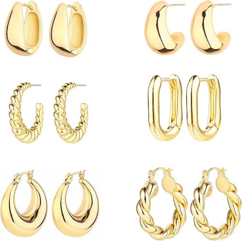 These hoop earrings come in a pack of six, and each one is plated in 14-karat white or yellow gold, so they look much more expensive than they actually are — and they’ll last for a long time. Lightweight and made from hypoallergenic and nickel-free metal, the earrings are perfect for daily wear to elevate any look with ease.