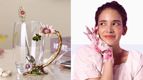 Make your next glass of coffee or tea a little more special with one of these floral glass mugs. The mug is crafted from lead-free crystal and comes with a matching spoon for easy stirring as well as a cleaning cloth and nonslip pad. And each mug holds 13 ounces so there’s plenty of room for your favorite beverage.