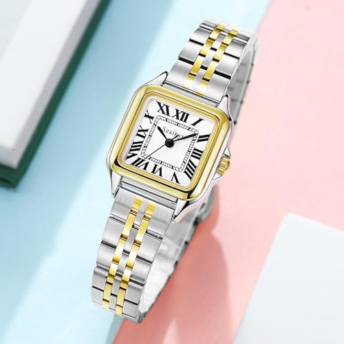 This petite watch features a Roman numeral display and a vintage golden design, so don’t be surprised if people mistake this for a family heirloom. The watch features a golden finish that’s water-resistant, so you can feel comfortable wearing it throughout the day. Plus, it uses Japanese quartz movement for dependable timekeeping.
