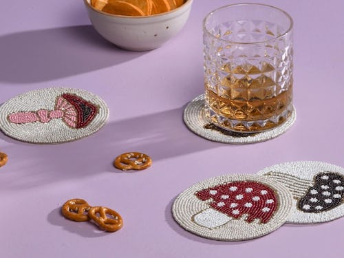 These handmade drink coasters look like they belong in a pricey boutique, but they’re actually incredibly wallet-friendly. Handcrafted with hundreds of delicate beads, the pack of four coasters features fun designs inspired by mushrooms. Each coaster is a different style, which can also help to differentiate drinks from one another at a cocktail party.