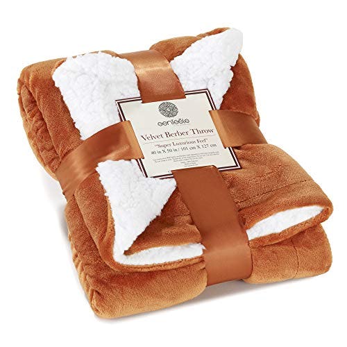 Genteele Sherpa Blanket – 40 x 50 Inch Fuzzy, Super Soft Throw Blankets for Couch, Bed & Sofa – Cozy, Plush Reversible Fleece Blanket Alternative – Burnt Orange/White