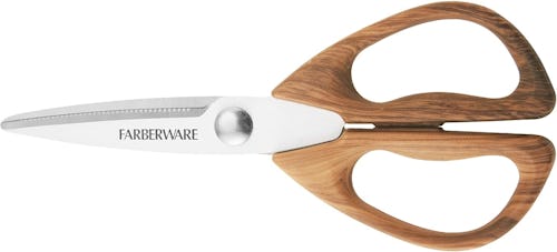 A good pair of scissors like these all-purpose shears are an essential item around the house. The 8.3-inch shears feature ergonomic faux pecan wooden handles with a comfortable grip and ultra-sharp stainless steel blades with micro-serrations for precise cuts on meat, herbs, crafts, and more. In short, they look luxurious and get the job done.