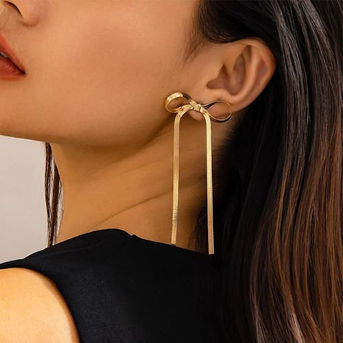 These stunning drop earrings look like an expensive jewelry find, but they’re actually ultra-affordable. They feature an eye-catching bow design and are crafted from a gold-tone herringbone chain. And they look great with both casual and formal outfits, making them a versatile pair of earrings that you’ll be reaching for on the regular.