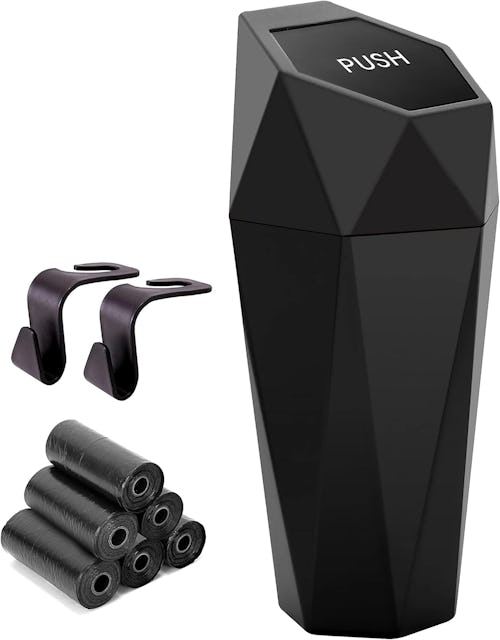 If you’re using a random plastic grocery bag to collect rubbish while on the go, you might want to upgrade to this highly rated car trash can. You’ll love the sleek design, ultra-low price, and how it fits perfectly in cup holders. Plus, the spring-loaded lid makes it easy to insert trash using only one hand, so you can keep the other on the wheel.