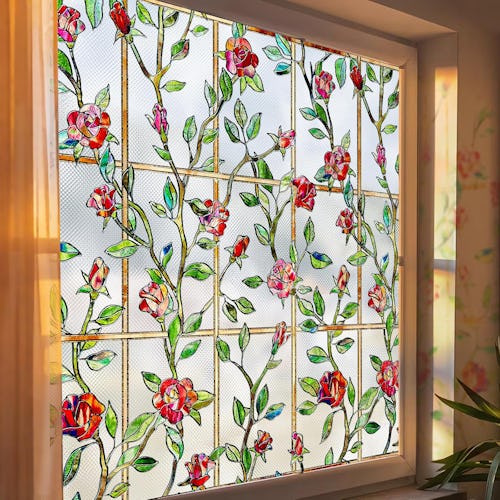 Instantly convert your window into a work of art with this cool privacy film that mimics the look of real stained glass. The embossed pattern casts soft, colorful light into the room while offering 99% privacy protection, making it perfect for bathrooms, bedrooms, or anywhere you want a little seclusion. Available in a wide variety of sizes and patterns, it attaches to smooth glass using just water — no glue or sticky residue — so you can easily reposition or remove it as needed.