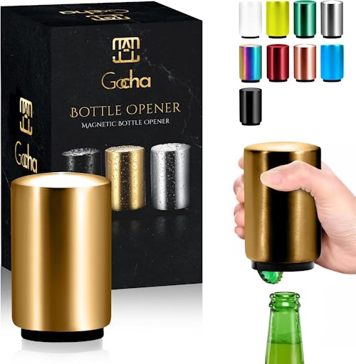 This clever automatic bottle opener pops off caps with a single push, then uses a hidden magnet to grab them so they don’t go flying across the room. The easy-press design means you don’t have to struggle with prying caps off or risk scraping your hand on sharp metal edges. Built with durable stainless steel, it’s compact enough to take camping or tailgating and comes in 10 chic metallic colors.