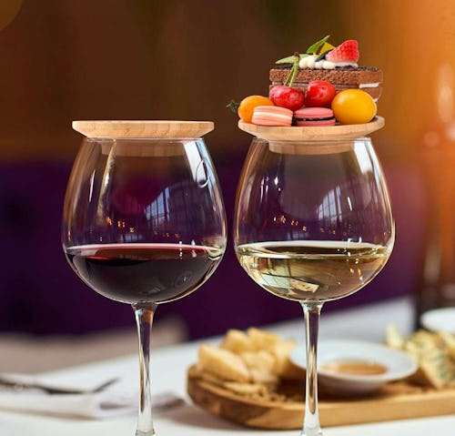 These bamboo toppers fit perfectly on wine glasses, keeping debris out (a must if sipping on a patio). They also can be piled high with charcuterie-style snacks or appetizers like a miniature plate. Six are included for under $20.