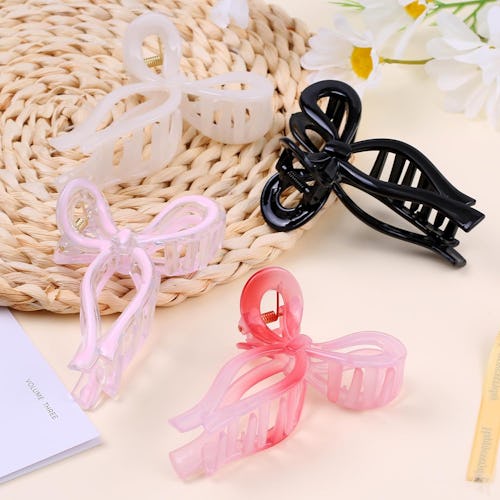 These budget-friendly bow hair clips add a cute factor to any outfit. They’re well sized for most hair lengths and types. And the set includes four of them in black, pink, gradient pink, and white to match most looks.