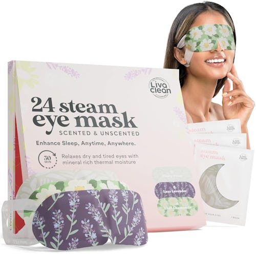 As soon as you open the package, these eye masks automatically get warm to release tension and provide hydration. The set includes 24 masks in total; 12 are unscented, eight smell like lavender (which can help with sleep), and four have a chamomile scent.
