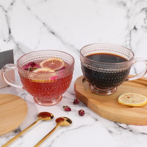 These beautiful vintage-inspired mugs are crafted from high-quality glass (in a pretty pink shade) with all-over embossing. A pair of golden stirring spoons and bamboo lids are also included in the two-cup set, rounding out this luxurious gift that shockingly costs less than $25. They also come in clear in the listing.