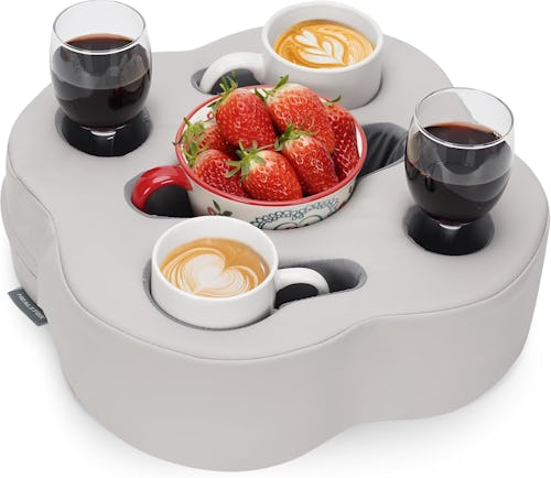 It’s nearly impossible to tip over this cup holder thanks to its nonslip, wide base. It has spots for different-sized cups — including mugs with handles — and even room for items like the remote control. The insulated slots will keep your drink hot or cold for longer. Use it on your couch, bed, or other plush surfaces.